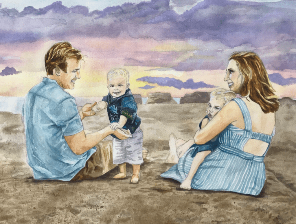 I’m beyond happy with this beautiful watercolor portrait my talented friend and neighbor @m.sherman.artist did for our family. It captures perfectly a moment, the kids’ expressions and body language, even little details down to Zoey’s stature and paws. Thank you Michelle, I can’t wait to get this framed and on the wall.