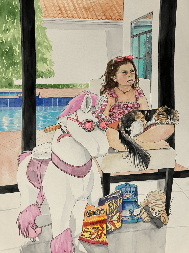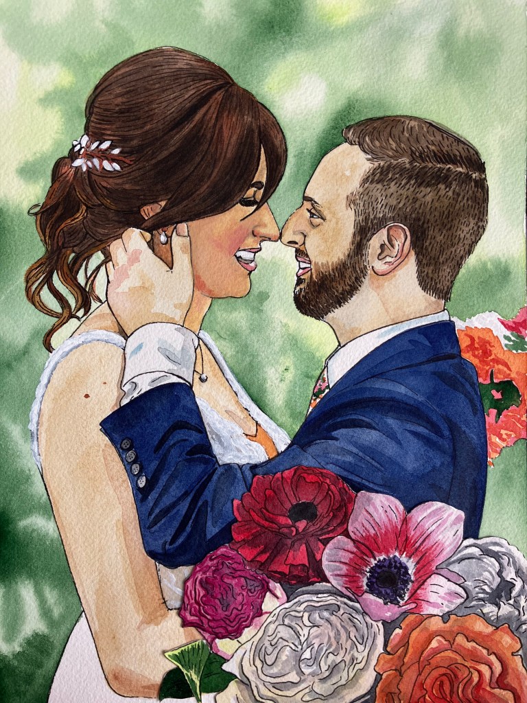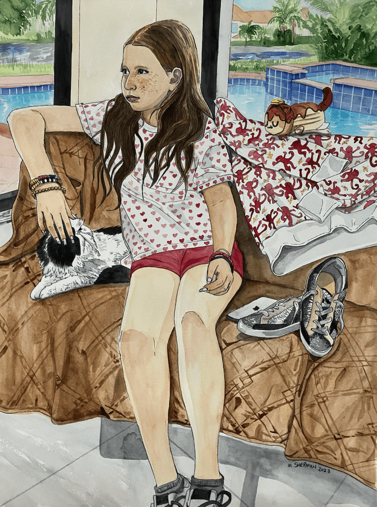 Michelle uses high quality materials and takes care to make each painting special. She uses cotton, cold pressed watercolor paper. The drawing and painting process is labor intensive and takes hours upon hours to create. First, she likes to meet with the subject and take photos. This is a possibility if the client lives within 20 miles of Boca Raton. Otherwise, she will paint from a photo that the client sends her.