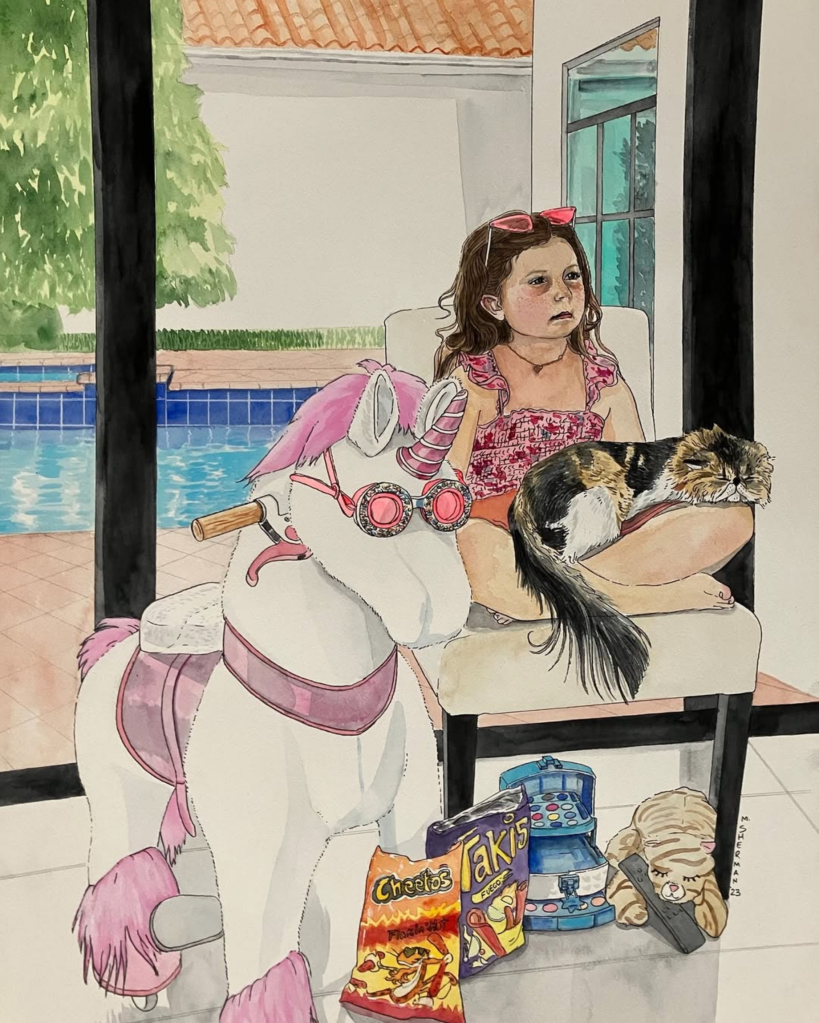 Eve, Royal Palm PlaceMizner ParkSOLD Flossy’s Fountain IISOLD Garden in Royal Palm PlaceTranquil Marina, 2024Starbucks in Mizner ParkPublix on Camino RealThe Boca RatonSculpture in Sanborn SquarePortrait CommissionIllustration for Michelle’s book, Sarah Visits the Art Museum