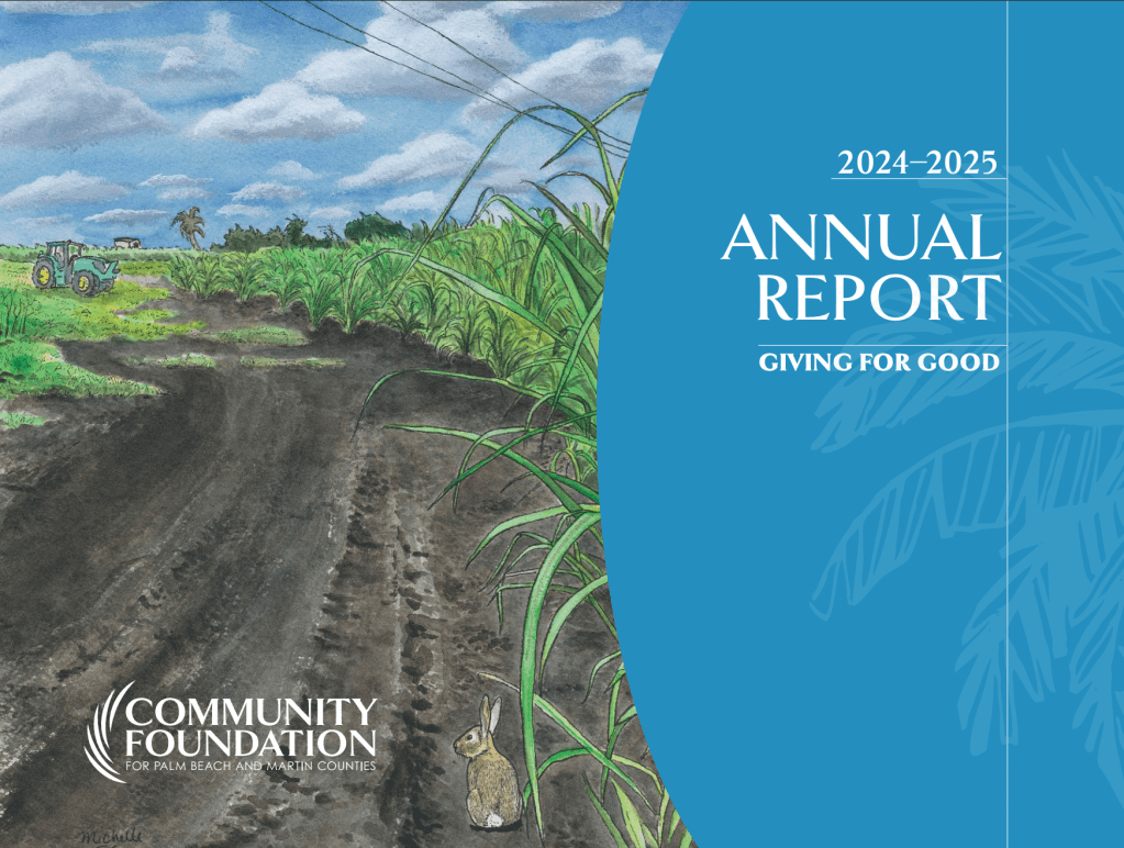 Commission for the Community Foundation for Palm Beach and Martin Counties Annual Report. This painting highlights the beauty of Belle Glade, one of the areas they serve. Watercolor on paper.